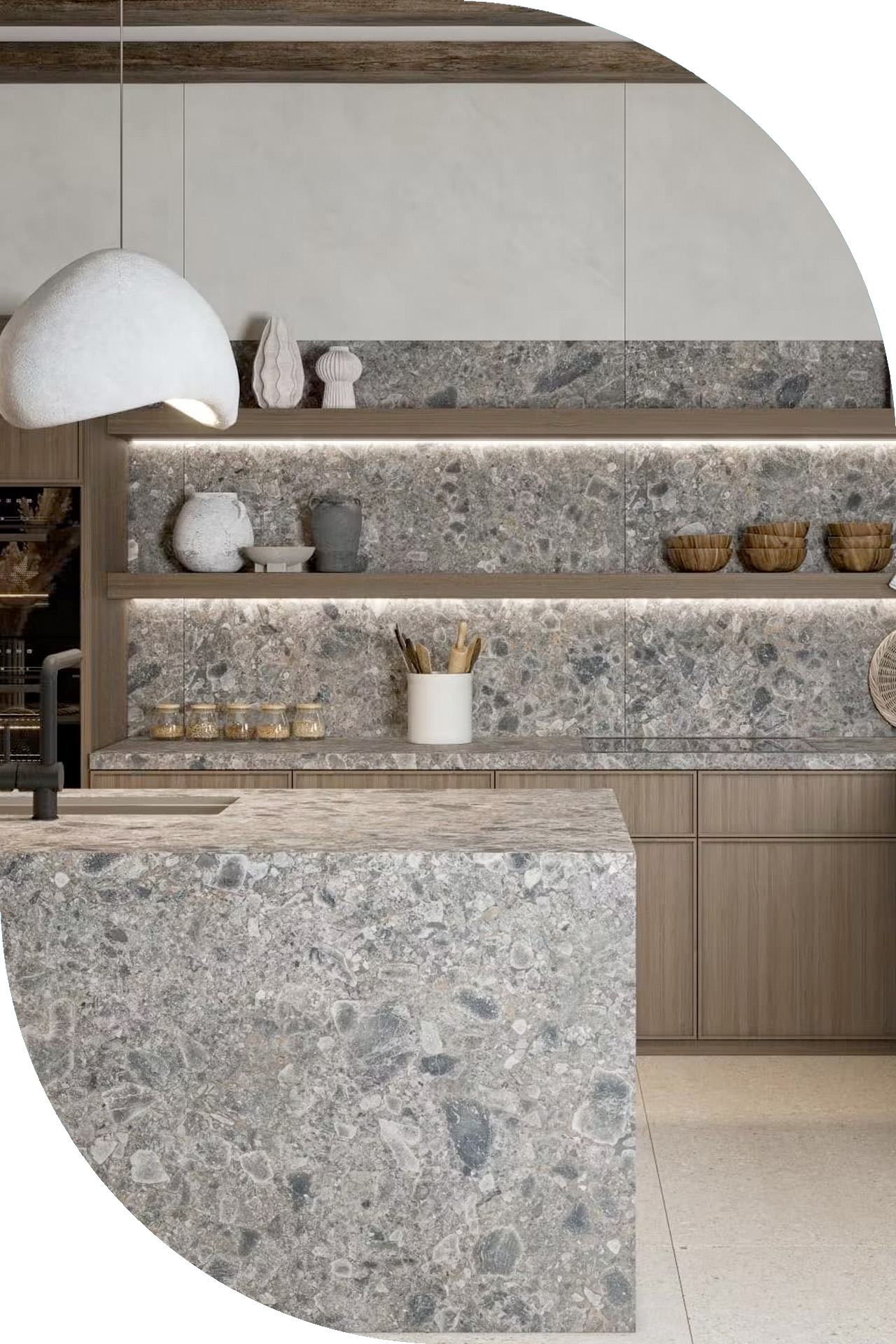 Es un material resistente, duradero y fácil de limpiar que aporta un toque de distinción a cualquier cocina.